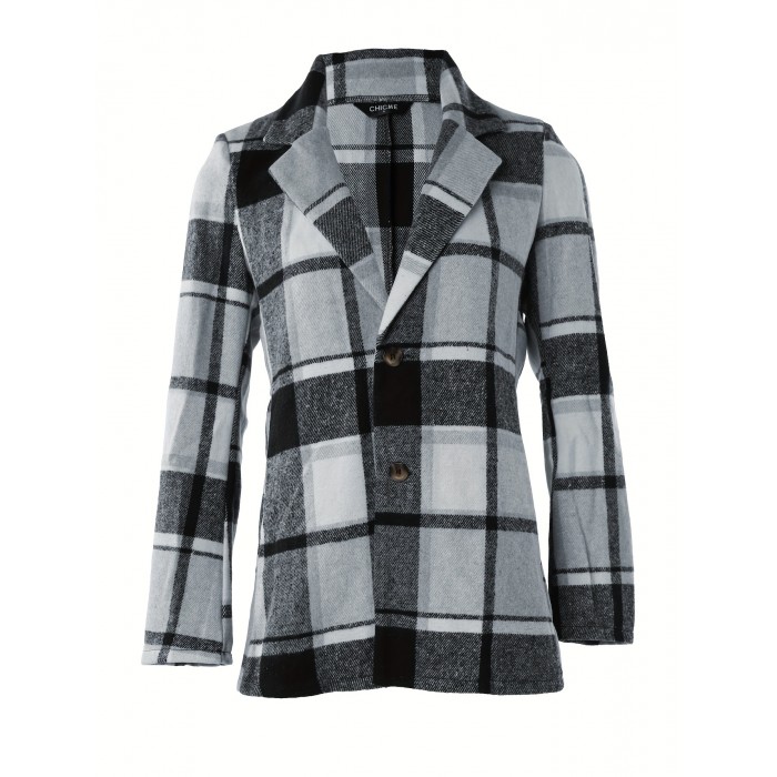 Plaid Button Down Long Sleeve Lapel Coat, Fashion Winter Blazer, Women's Clothing