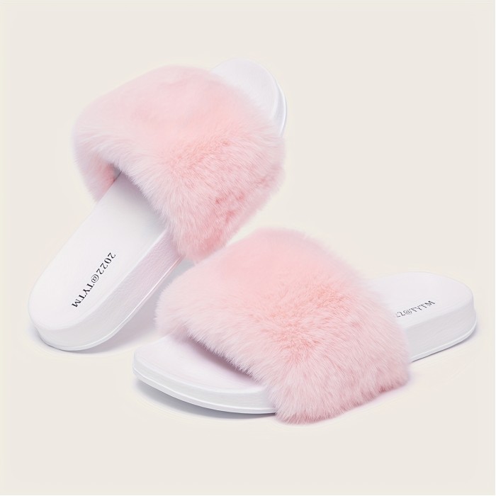 Solid Color Faux Fur Pattern Slippers, Fluffy Soft Sole Platform Casual Slides, Plush Cozy Indoor Shoes